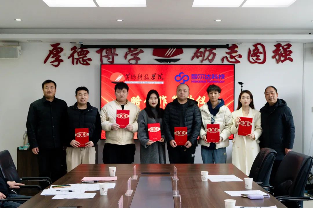 1月12日上午, 黃河科技學院與河南夢爾達科技有限公司簽約授牌儀式在藝體學部二樓會議室成功舉行。