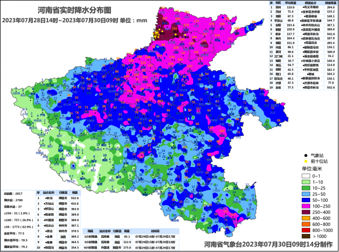 省氣象臺監測顯示,7月28日14時-30日9時,我省大部出現暴雨,北中部、東部、東南部部分縣市出現大暴雨,新鄉、鶴壁、安陽、濮陽、鄭州等地部分縣市出現特大暴雨。