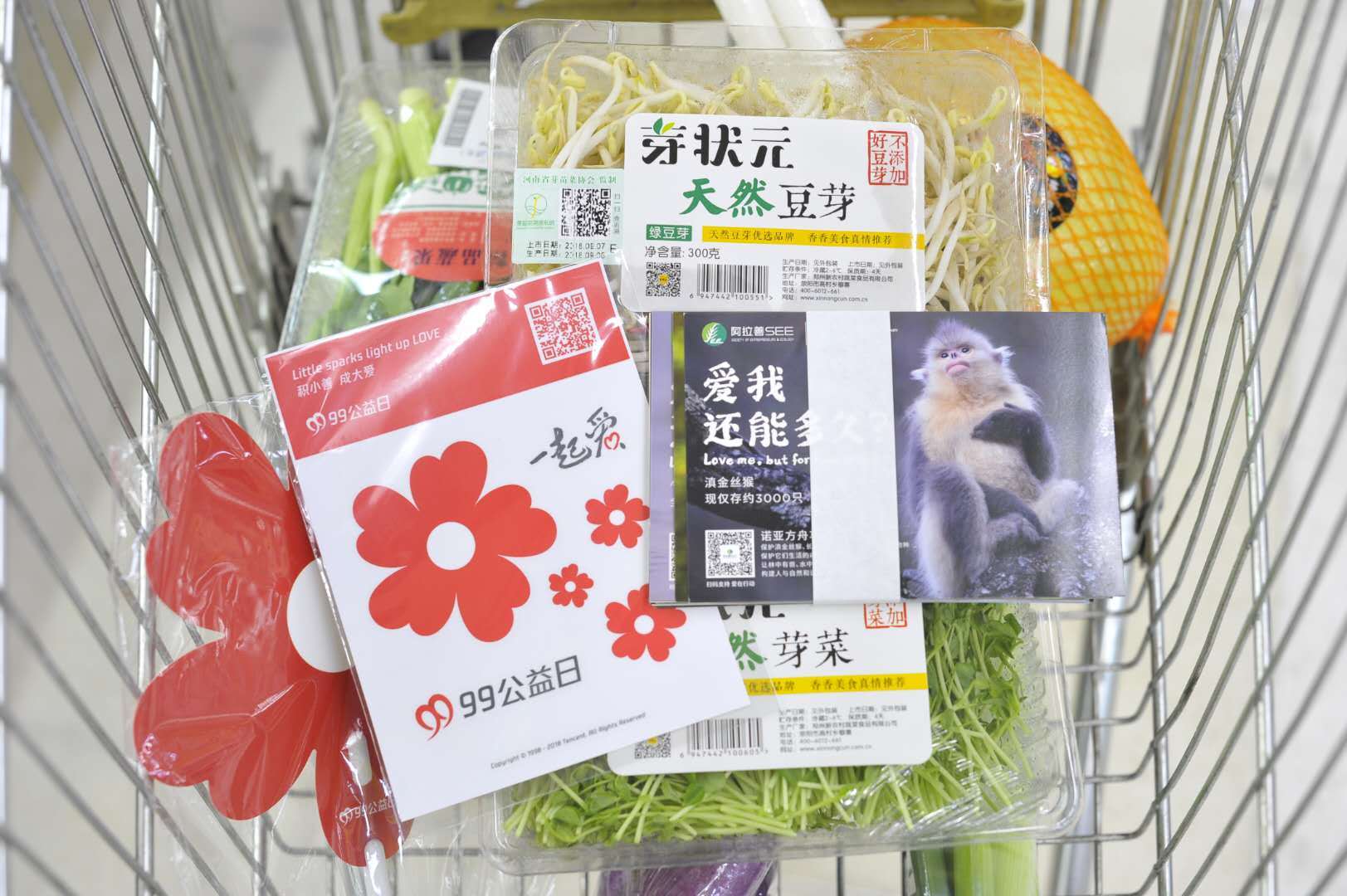 周女士帶兒子前來采購下一周的儲備食材,走到芽狀元專柜前,看到99公益日海報,不禁駐足,停頓了兩分鐘之后,跟6歲的兒子商量著說,“我們來參與捐款吧,可以用來保護這些瀕危的珍稀鳥類。”