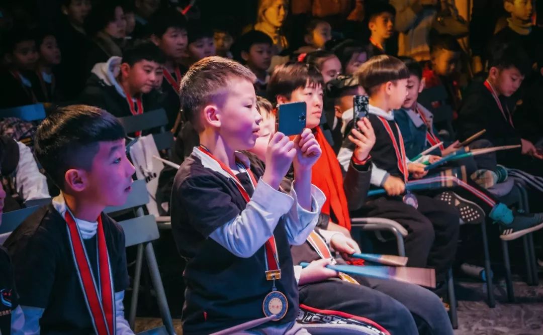 當天下午,理想國聚匯禮堂迎來這場新年音樂會。幾十名孩子先后演奏了《98K》《沙漠駱駝》《魯邦三世》《灌籃高手》《龍卷風》《西班牙斗牛曲》等大熱曲目。跌宕起伏的節奏,時而喧囂吶喊、時而珠落玉盤,讓聚匯禮堂變成了音樂的海洋。