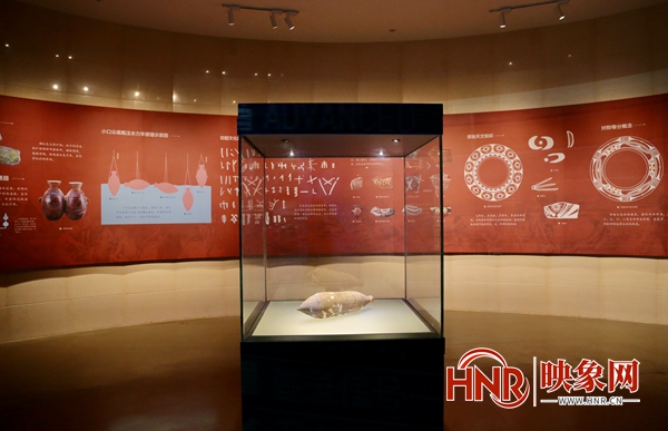 在文物展廳,眾多造型精美、花紋獨特的陶器讓人賞心悅目。巧妙的構思、嚴謹的布局、明快的色彩對比,使大河村彩陶集中體現了中原地區仰韶文化的時代風貌。
