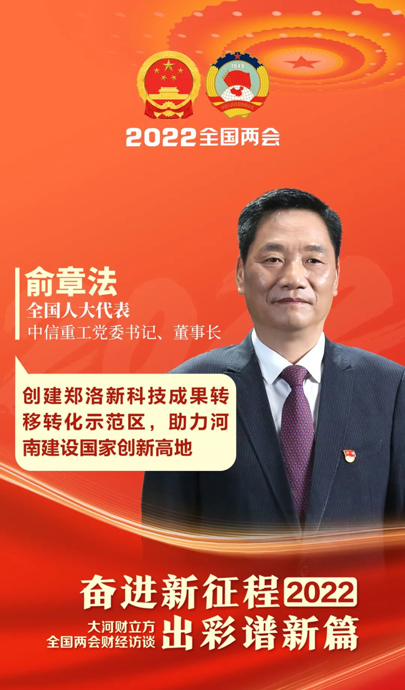 2022年,全國兩會期間,大河報·大河財立方記者采訪了中信重工機械股份有限公司黨委書記、董事長俞章法。今年全國兩會,俞章法帶來兩份建議,分別是關于支持創建鄭洛新科技成果轉移轉化示范區的建議,關于加大首臺(套)重大技術裝備支持力度、提高關鍵重大裝備國產化率的建議。