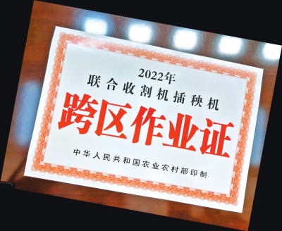 5萬張農機跨區作業證、400萬套農機設備