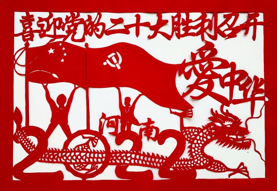 大河網訊 近日,為了迎接黨的二十大勝利召開,淅川縣上集鎮梁洼村73歲農民張雙成利用農閑時間創作剪紙作品。一張薄薄的剪紙,一份濃濃的情懷,將老百姓對黨的信念和感恩融入到剪紙作品中,表達了對中國共產黨的無限熱愛和對祖國繁榮富強的美好祝福。(李雪山 賈宏斌/文圖)