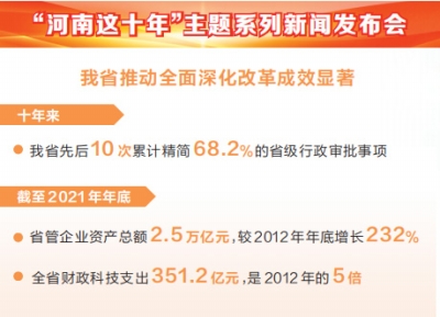 9月20日,省委宣傳部舉行“河南這十年”主題系列發布會全面深化改革專場。省委改革辦、省委編辦、省發展改革委、省政府國資委、省地方金融監管局、省行政審批和政務信息管理局等部門有關負責同志,圍繞“全面深化改革,助力爭先出彩”,介紹黨的十八大以來我省推動全面深化改革的重大舉措和取得的突出成效,并回答媒體關心的問題。