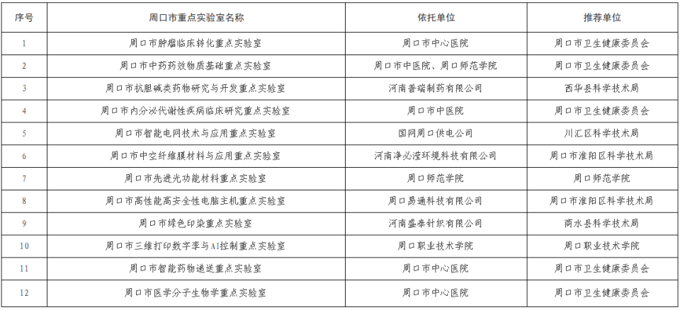 根據《關于開展2025年度周口市重點實驗室建設的通知》(周科〔2025〕41號)文件要求,經主管部門推薦、專家評審等程序,周口市科技局擬認定周口市腫瘤臨床轉化重點實驗室等12家實驗室為周口市重點實驗室(詳見附件)。現予以公示,公示期5天(12月1日—12月5日)。