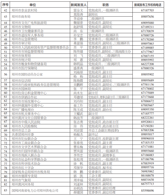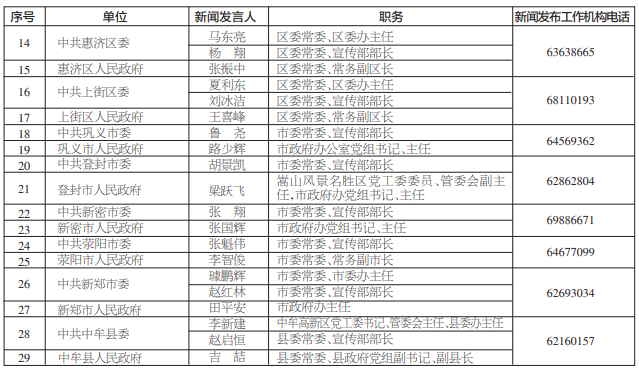 為進(jìn)一步推動(dòng)黨務(wù)政務(wù)信息公開和公共企事業(yè)單位信息公開,積極回應(yīng)社會(huì)關(guān)切,保障和維護(hù)人民群眾的知情權(quán)、參與權(quán)、表達(dá)權(quán)和監(jiān)督權(quán),中共鄭州市委宣傳部、鄭州市人民政府新聞辦公室公布146名新聞發(fā)言人名單。