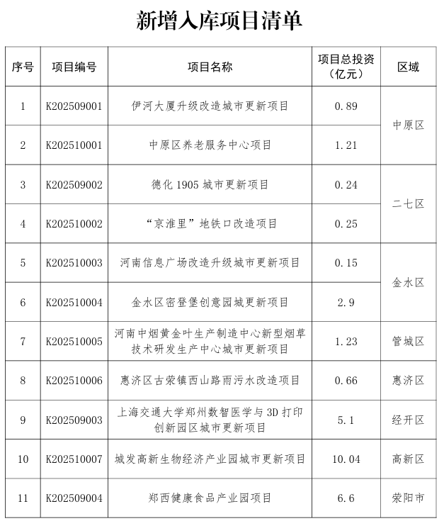 12月3日,鄭州市城鄉建設局發布通知,調整城市更新項目庫。其中,中原區伊河大廈升級改造城市更新項目等15個項目于近期通過評審并完成社會公示,納入城市更新項目庫,15個項目